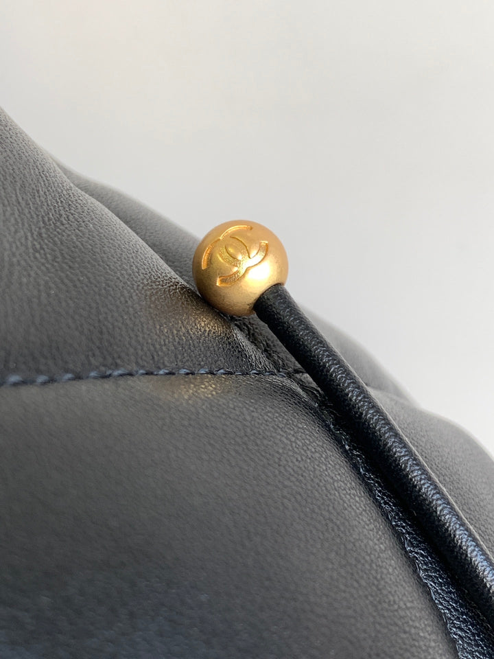 CC BACKPACK 26 IN BLACK CALFSKIN WITH GOLD HARDWARE