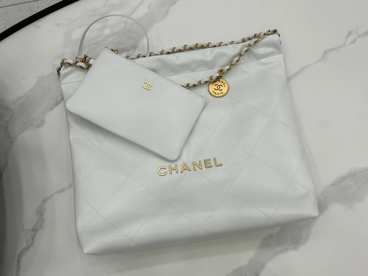 CC LARGE 42 HANDBAG IN WHITE CALFSKIN GOLD HARDWARE