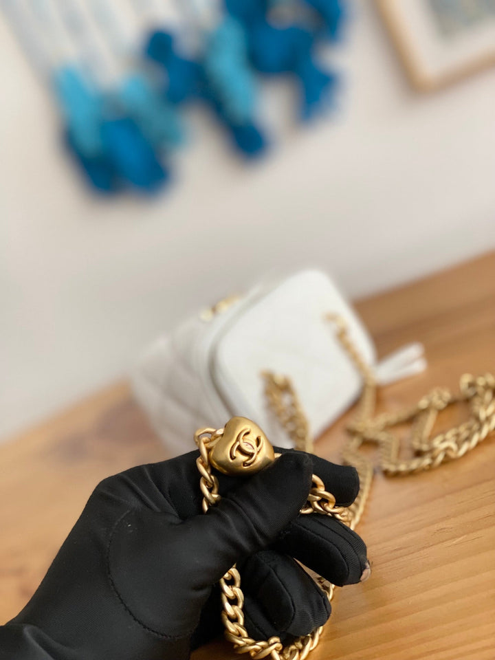 CC MINI 10 VANITY IN WHITE CALFSKIN GOLD HARDWARE
