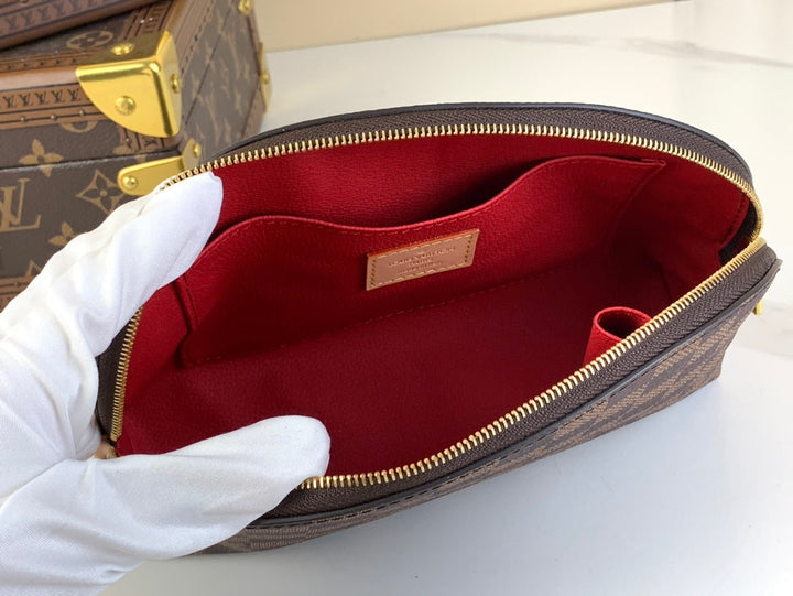 COSMETIC POUCH 22 IN BROWN DAMIER EBENE CANVAS