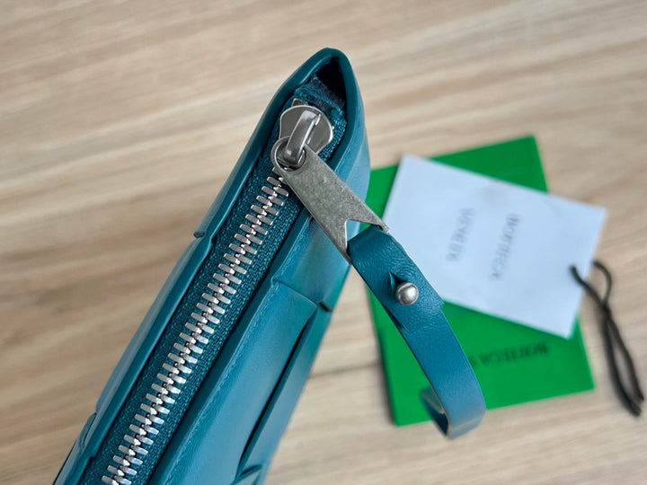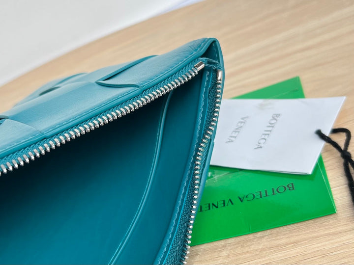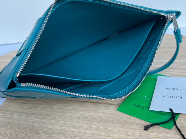 LARGE CASSETTE POUCH 35 IN LAGOON BLUE CALFSKIN