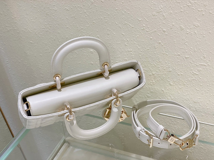 MEDIUM LADY D-JOY 26 WHITE LAMBSKIN