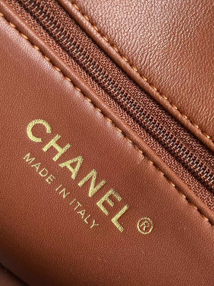 MINI FLAP BAG 18 IN BEIGE WOOL AND GINGER ORANGE CALFSKIN GOLD HARDWARE