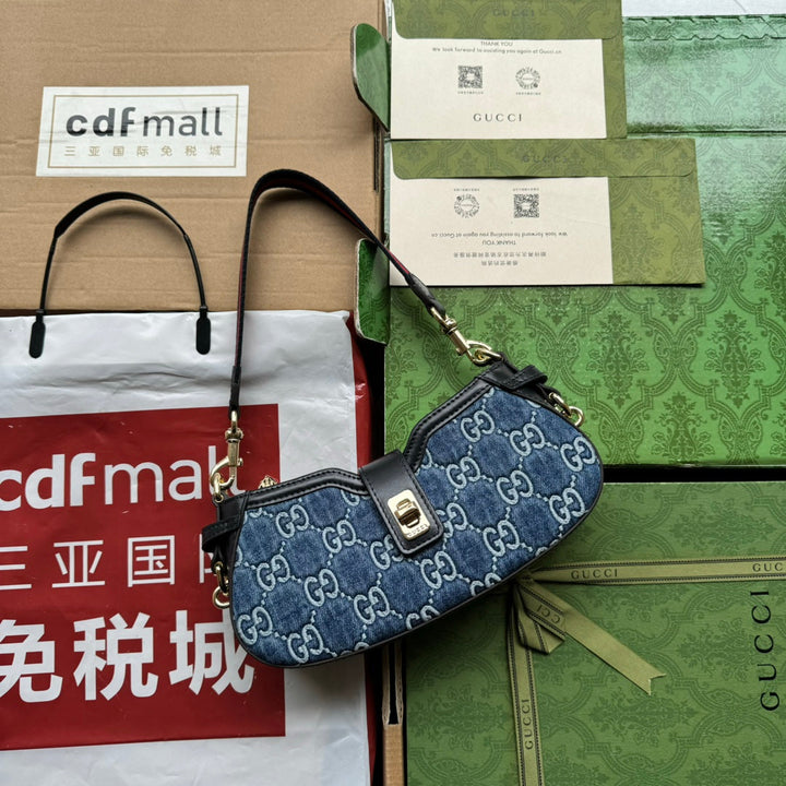 ?Material: Embossed denim and calfskin trim