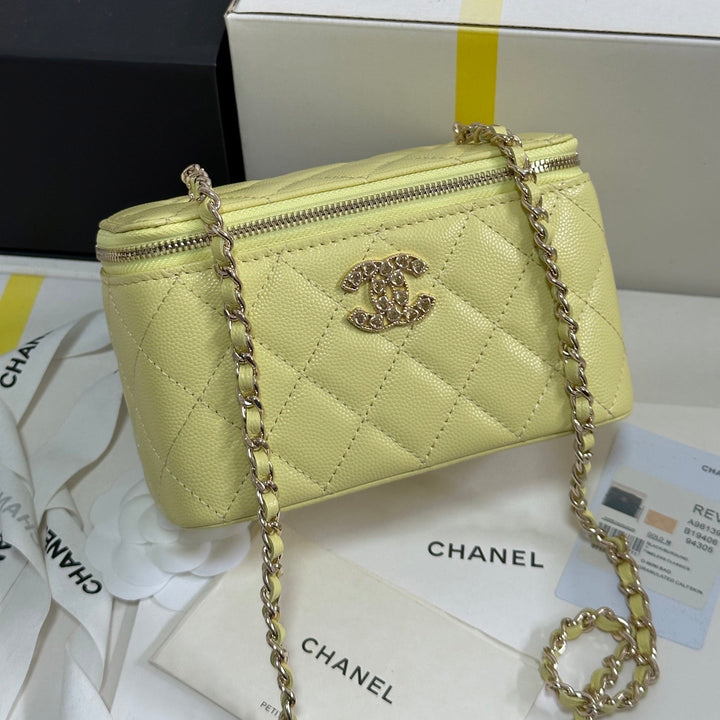 VANITY CASE 17 CRYSTAL STUDDED LOGO IN YELLOW CALFSKIN GOLD HARDWARE